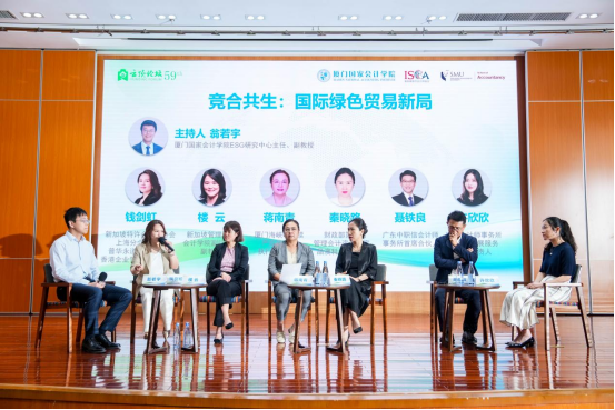圆桌讨论环节,由厦门国家会计学院ESG研究中心主任翁若宇副教授主持,与会嘉宾以“竞合共生:国际绿色贸易新局”为题,就绿色贸易壁垒应对、ESG生态构建等议题展开热烈讨论,一致认为竞争与合作应相辅相成,共同推动全球绿色转型。